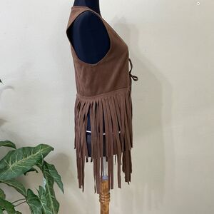 Women’s S Vest tie front Brown Faux Suede Fringe Rodeo Western Boho Yellowstone