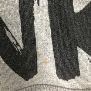 Super comfortable size small but fits a medium too! I have long arms and this always fit well. Has a small stain (pictured) Make me an offer! 😁