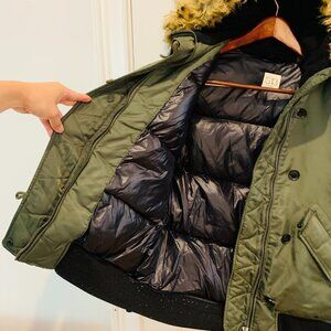 Women's S13 by SAM DUCK Down Feathers Puffer Bomber Hooded Jacket Jet Forest Green Size Medium