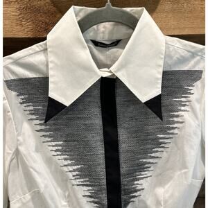 Women’s SAMUEL DONG Black/White Long Sleeve Button Up Shirt Size S *B7