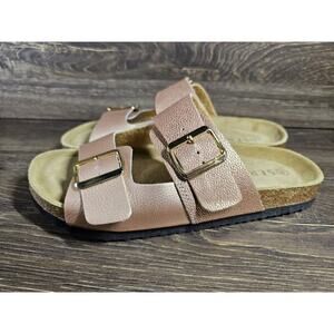 Womens SERRA Rose Gold LEATHER Side Buckle Sandals Shoes 8 Birk