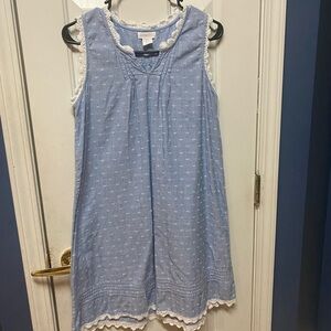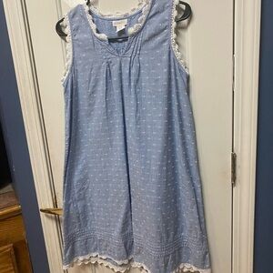 Women's SHABBY CHIC Sleeveless Tunic Top Dress Blue Lace Hem Peasant Size S.