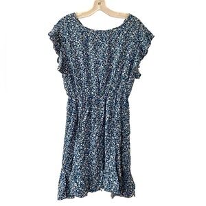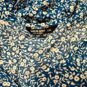 Women’s SHEIN Floral Blue Dress with Ruffle Sleeves - Size 1XL - NWOT