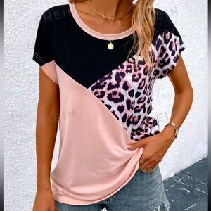 Women’s SHEIN LUNE Leopard Print Colorblock Batwing Sleeve Tee - Size XL - NWOT