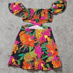 Women's SHEIN Multi-Color Floral Mini Dress; Cut-Outs & Ruffles; Size M, 6
