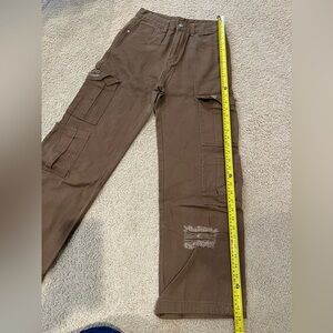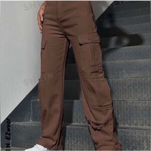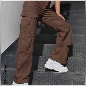 Womens Brown cargo pants with a distressed look, western flap pocket ripped jeans. #y2kfashion, size 4US, its a high waist wide leg cargo pants. 4 side pockets. See details on the photos.Brand- SHEIN.. never worn. Too tight for me. NWOT