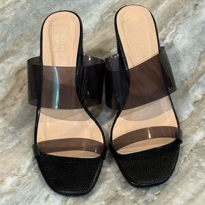 Women’s SHUSHOP Gabrielle black heeled sandals- Size 7.5. Excellent, used condition. Little to no signs of wear. See all photos. Smoke free home. Fast shipping!