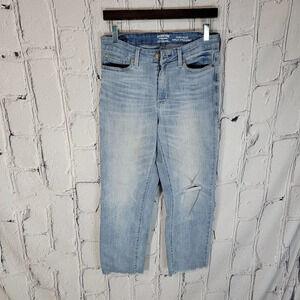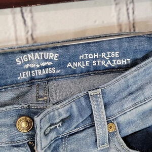 Womens SIGNATURE LEVI STRAUSS High Rise Ankle Straight Denim Jeans Frayed Hem 8