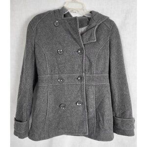 Women's SIZE 4 Kenneth Cole Wool Blend Pea Coat Winter Jacket Gray Warm Classic