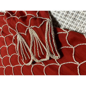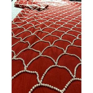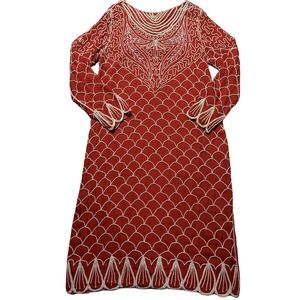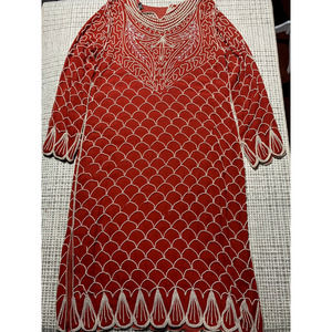 Womens S/M Red & White Fully Beaded 100% Pure Silk Midi Dress