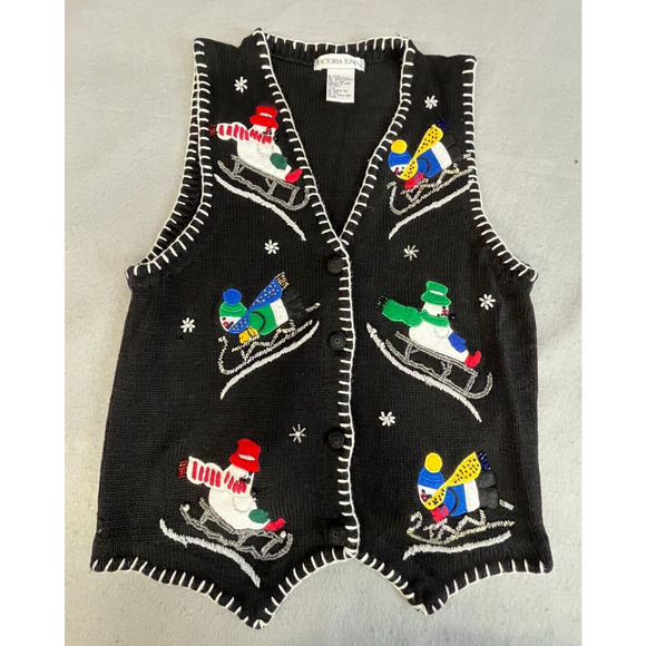 Women's SMALL Christmas Vest With Snowmen ugly granny snow Victoria Jones