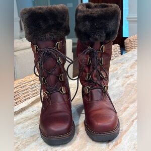 Women’s SOREL faux fur lined brown leather lace up winter boots- Size 7.5
