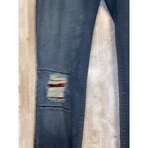 Women's SP Black Label Denim Blue Jeans Size 28 Red Plaid Patches Cuffs