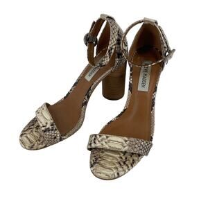 Women's STEVE MADDEN Size 6 Sara Faux Snakeskin Ankle Strap High Heel Sandals. The heel is round. Good pre-owned condition.