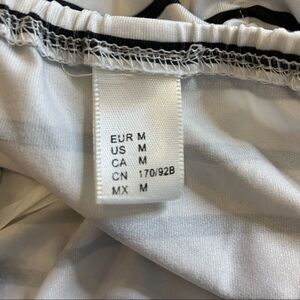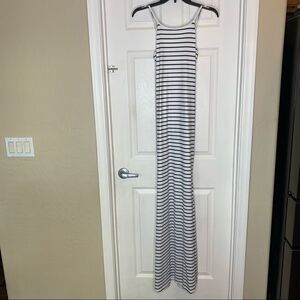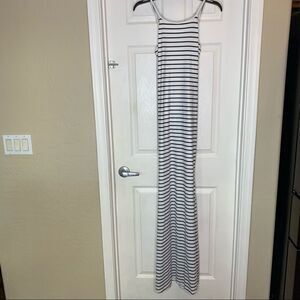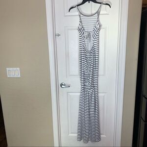 Womens SUPER LONG MAXI Dress Medium White Black Striped Ruched Strappy Open Back