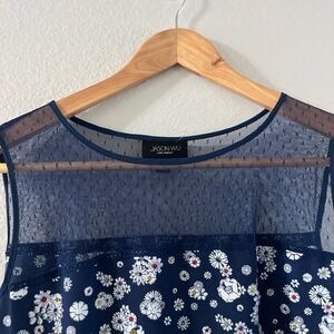 Women’s SZ Small Jason Wu for Target Tank Top (Sheer / Floral Navy Blue Flowers)