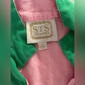 Women’s Sail To Sable Pink & Green Linen Tunic Sleeveless Sun Dress Preppy XS