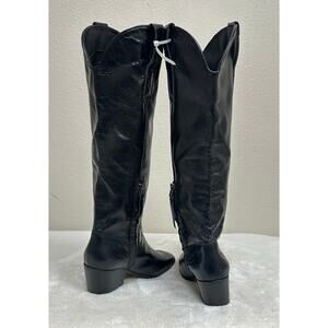 Women’s Sam Edelman Black Leather Tall Western Boots – Square Toe Zip Style