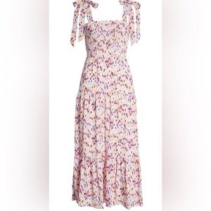 NWT Sam Edelman Confetti Smocked Bodice Maxi Dress SZ 12 White Multi