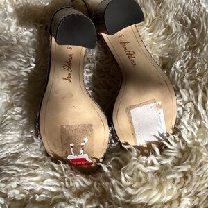 Dance the night away in the metallic Sam Edelman Daniella heels featuring aleather upper with an open,-toe silhouette on a block heel.Ankle strapwith buckle closure.Synthetic lining with cushioned footbed.Syntheticoutsole.Imported.