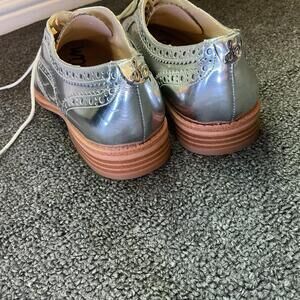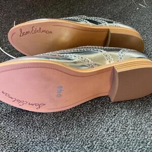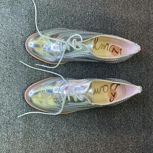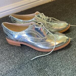 Women’s Sam Edelman Jerome Silver Leather Wingtip Brogue Oxford Shoes Size 7