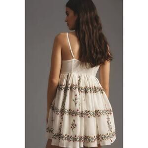 Women's Samant Chauhan Square-Neck Floral Embroidered Mini Dress size M Bohemian