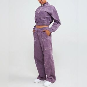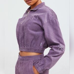 Womens Samii Ryan Daisy Gal Corduroy Quarter Zip Mock Neck Jacket PURPLE