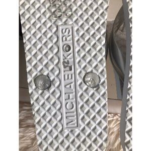 Women’s Sandals Flip Flops Size 10 Michael Kors Silver Grey RX20B
