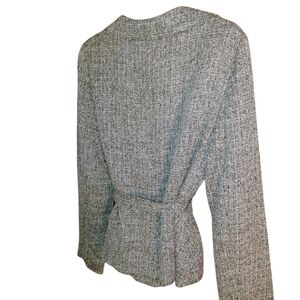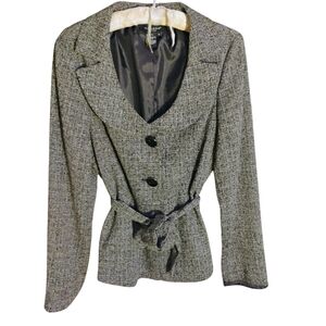 Women's Sandro Grey Tweed 3 Button Blazer Jacket Size M Wideset Lapell With Tie
