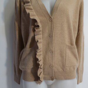 Womens Sandro Paris Tan Wool Cashmere Ruffled V-Neck Cardigan Sweater 3 US/L