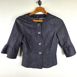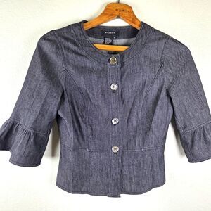 Women's Sandro Sportswear Denim Short Blazer Cotton Blend Blue Jacket Size Small