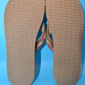 Womens Sanuk Flip Flops Sz 11 Tan Multi Color