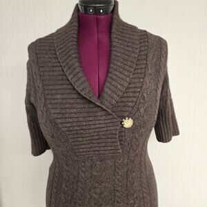 Excellent condition, women's Sarsaparilla brown, cable knit tunic sweater. This sweater is partial rabbit fur. This sweater has 1/2 length sleeves and does stretch some.