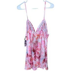 Women's Satin Babydoll Nightgown Valentine Pink Floral Spaghetti Straps Size M