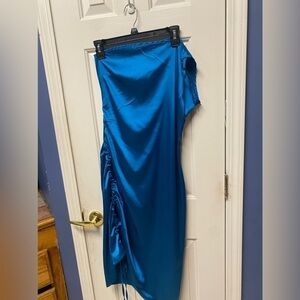 Women's Satin Dress Spaghetti Strap Drawstring Ruched Cocktail Evening Party Night Club Dress size L