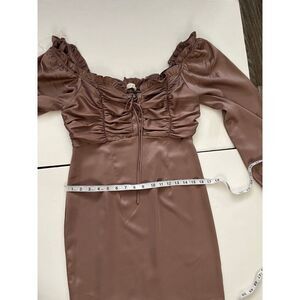 Women’s Satin Front Tie Mini Dress long sleeve size L color Champagne