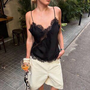Women's Satin Lace Trim Camisole top Black