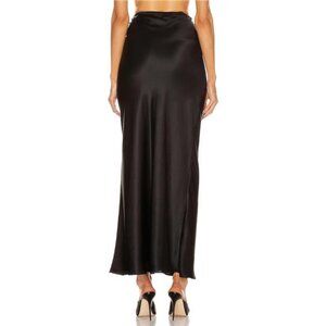 Womens Satin Maxi Skirts Flared A-Line Black
