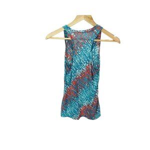 saucony womens size s blue and red racerback tank top. colorful print, stretch material and in excellent condition