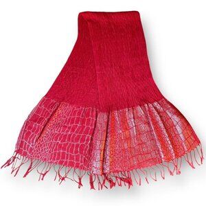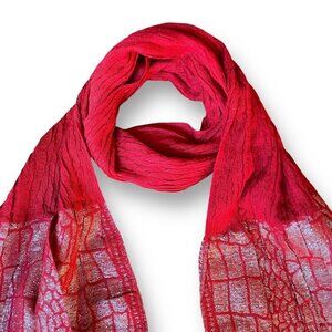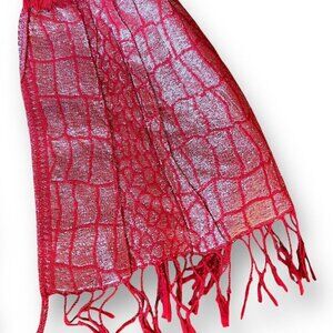 Womens Scarf Burgundy Wool Blend Metallic Reptile Print Boho Fringe Ovesized