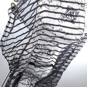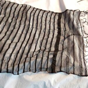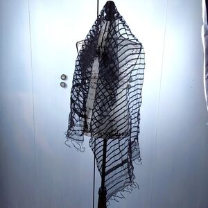Womens Scarf EXTRA Long & Wide Black SHEER W/ Vertical Stripes FRINGE on Ends