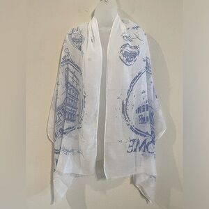 White Blue Cotton Italy With Love Novelty Print Lightweight Scarf