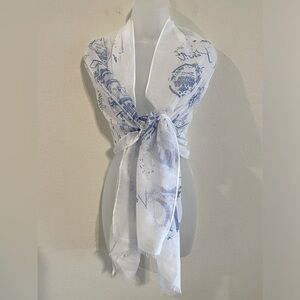 Women’s Scarf One Size White Blue Cotton Italy With Love Novelty Print