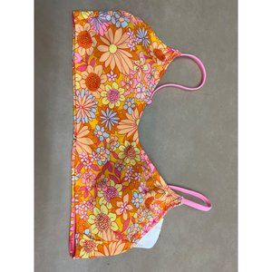 Women's Scoop Bralette Bikini Top Wild Fable Orange Floral Print Large