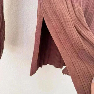 Womens Scoop Knit Button Front Shirt with Collar Brown Small Fall