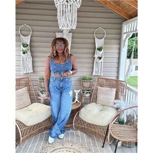 Women's Scoop Neck Reworked Denim Tiny Vest - Wild Fable™ Medium Wash new