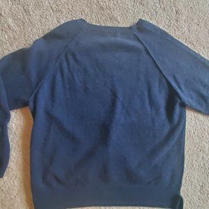 Women's Scott & Scott - London Navy blue Cashmere sweater that has the word "Chill" on the front of the sweater in pink. This is a size M