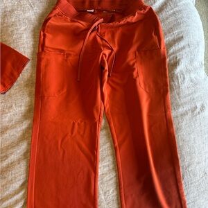 Mandala Burnt Orange Scrub Set. Top= S, Pants= Medium, Petite. Like New.