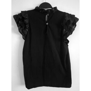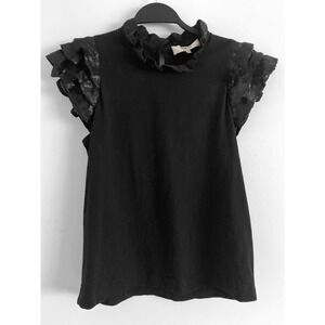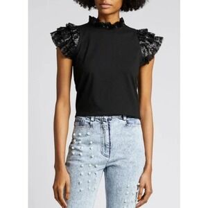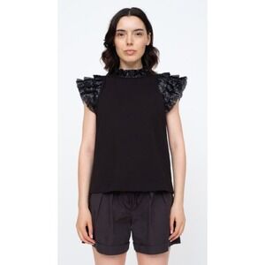 Women's Sea New York Rachelle Sequin Collar Sequin Flutter Sleeves Mock Neck Tee Black