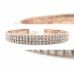 Womens "Selena" Rose Gold 3 Row Rhinestone Choker
